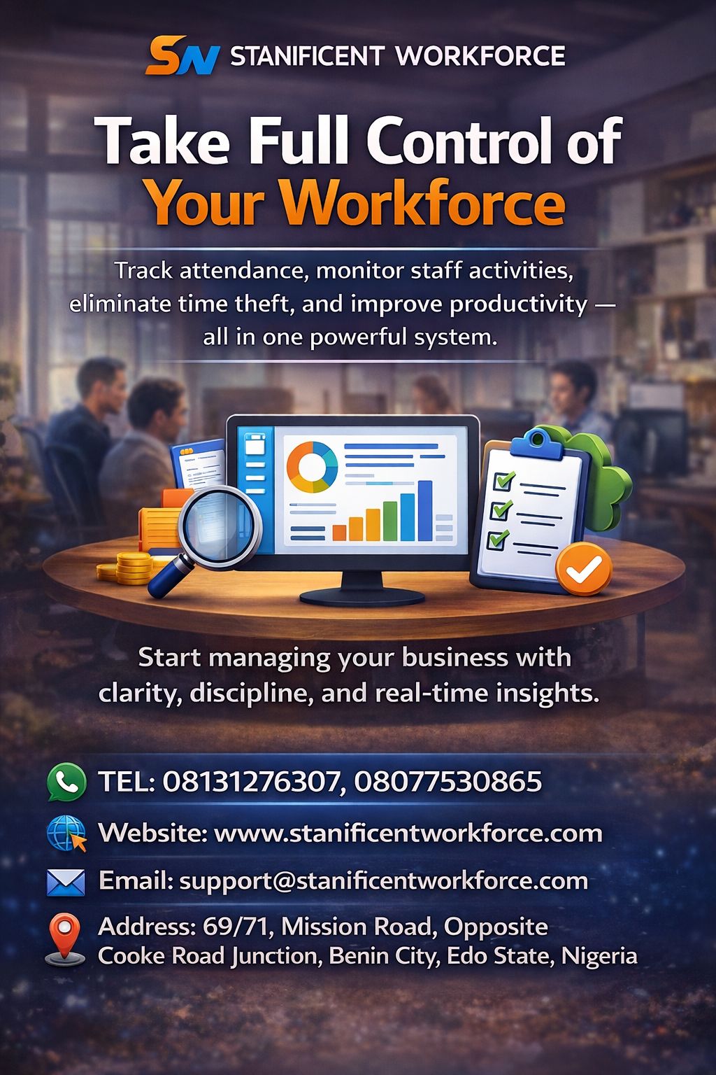 Designed for businesses of all sizes — small, medium, and large enterprises, STANIFICENT WORKFORCE ensures every minute worked is recorded and every activity is tracked. This empowers business owners and managers to make informed decisions based on real data.